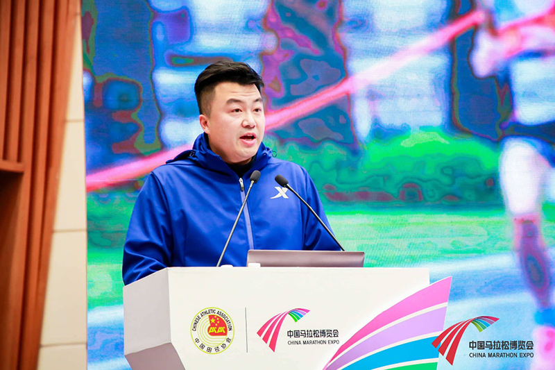 ▲ 江蘇問源體育科技有限公司執(zhí)行總裁李延明先生發(fā)表“大數(shù)據(jù)時代的馬拉松運營 “主題演講