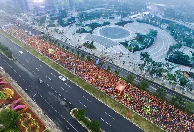 近1.5萬名選手匯成的歡樂橙色海洋將于起點出發(fā)