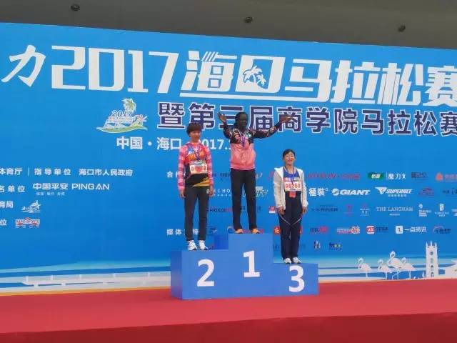 2017平安·富力海口馬拉松女子全程前三于頒獎臺上合影留念