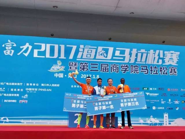 富力地產集團副總裁兼海南區(qū)域公司董事長趙沨先生為2017平安·富力??隈R拉松男子全程前三頒獎
