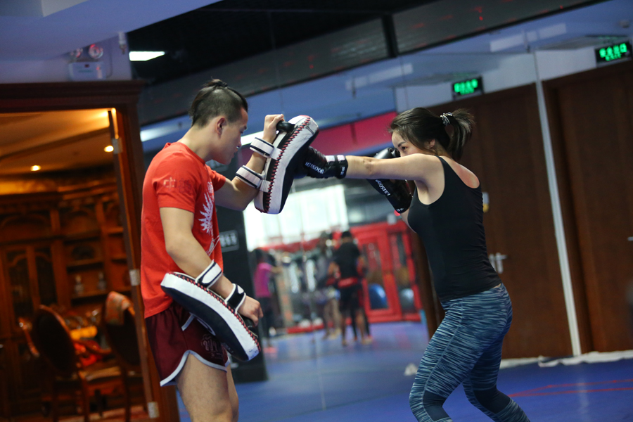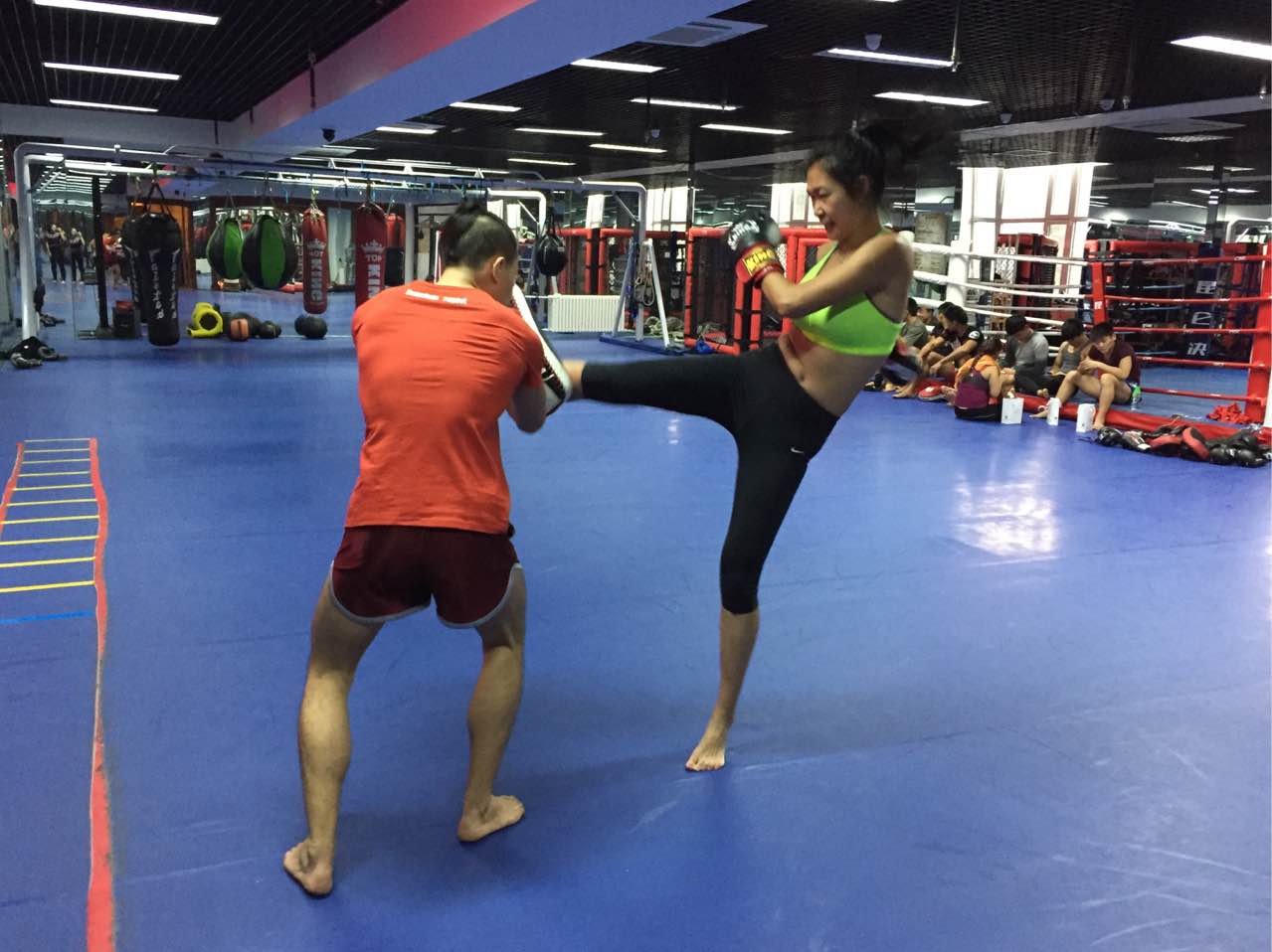 被汗水浸透的運動衣,厚重的拳擊手套,有點小肌肉的臂膀,搏擊中高高束起的辮子,都會讓人的心為之柔軟,同時又被深深地震撼。一拳一腿之間,感受著自己的呼吸,身體和心靈一起升華,一個自由的身體才會可能有心靈的自由。